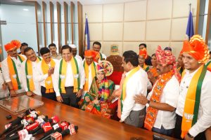 महापालिका आयुक्त डॉ. कैलास शिंदे यांनी महापौर व उपमहापौर यांचे पुष्पगुच्छ देऊन अभिनंदन केले.